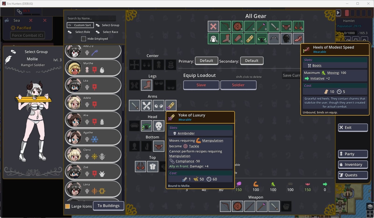 Дальше вы решаете, кем они станут. Первый вариант — воительницы. Вы вооружаете их и берете с собой в следующие вылазки. С ними проще захватывать новые, более сложные подземелья.
