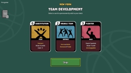 Каждый игрок в вашем стартовом составе — это три карты с его навыками. Вы ими управляете. Можно поставить двойную опеку, чтобы выбить мяч. Или собрать пятерку снайперов, которые закидывают трёхочковые сквозь защиту.