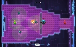 Здесь очень ярко. Неоновые нити оплетают окружение, вспышки спецэффектов оставляют на сетчатке цветные пятна. Музыка — это не просто фон: она пульсирует синтезаторами, имитируя то сердцебиение системы, то её предсмертную аритмию.