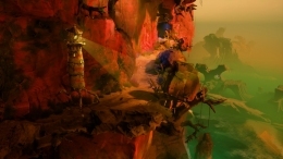 Зачем? Цель не формулируется словами. Она зудит под обшивкой, как забытый осколок. Ты просто знаешь: нужно идти к центру, туда, где гора режет горизонт. И мир вокруг отвечает тебе не логикой, а сновидением. Преграды здесь растут из земли, как костяные шипы; платформы рождаются из тишины по зову птичьего крика. Решаешь головоломки не умом — инстинктом. Поставил грузное тело *тут*, птица вспорхнула *там*, и где-то вдали послышался глухой стон сдвигающихся плит… пахнет влажным мхом и озоном после разряда.