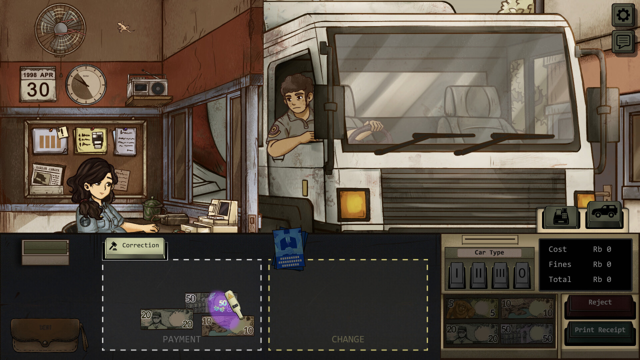 Графика здесь — будто кто-то размочил старую газету, оставив синеватые разводы и зернистость. Все выглядит так, словно эти кадры printed на дешевой бумаге в девяностых, и сейчас они пожелтеют у тебя на глазах. Каждый щелчок затвора — не просто проверка, а поступок. Отпустишь одну машину — и вечером не хватит на хлеб. Остановишь другую — и, возможно, подпишешь кому-то приговор.