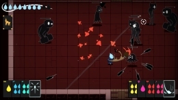 И вокруг всё рисуется. Выстрелы — это не снаряды, а мазки густой краски, оставляющие в воздухе жирный, медленно исчезающий след. Слышишь, как они шлепаются о стены, липким эхом отдаваясь в подземелье. А эти карты… их холодная фактура под пальцами становится единственной точкой опоры. Сочетаешь мазок и цвет — и мир на секунду вспыхивает новым оттенком хаоса. Можно ли создать порядок из этого вихря? Вряд ли. Ты лишь добавляешь новые слои.