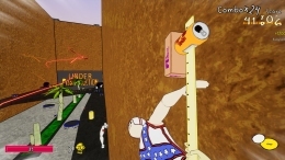 Ты не просто бежишь. Ты скользишь по перилам, чувствуя вибрацию металла, отталкиваешься от батута, и струя воды бьет тебе прямо в спину, швыряя вверх. А потом… оседлать врага. Превратить его тело в доску для серфинга. Слышишь этот свист ветра и его хрип? Это твой ритм. Остановиться — значит позволить множителю очков истечь кровью, которая на самом деле просто слово «БДЫЩ!» расплывается на экране.