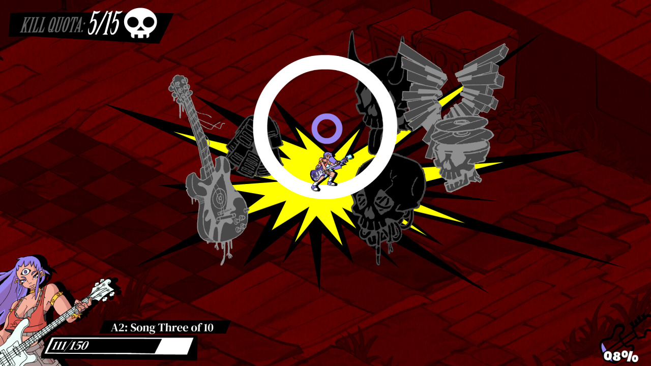 Здесь нельзя просто махать гитарой как дубиной. Музыка диктует твой пульс, а значит — и ритм боя. Пропустишь долю — и атака сорвётся, хриплой и несвоевременной. Но если попадёшь точно… О, тогда звук будто разрывается изнутри, заставляя экран содрогнуться. И ты уже не просто бьёшь — ты исполняешь танец уничтожения.