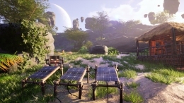 Мир раскидался по островам, и ты будешь бороздить его на своем плавучем убежище, нырять в мутные глубины, где свет прожектора выхватывает из тьмы лишь очертания давно затонувших кораблей. Собираешь ресурсы не кликом мыши — руками. Чувствуешь шершавость древесины, когда кладешь бревно на пилораму, и слышишь скрежет металла о точильный камень. Здесь нет меню крафта: чтобы получить доску, нужно распилить дерево, чтобы выковать меч — раздувать меха у горна и бить молотом по раскаленной заготовке, чувствуя жар в лицо.