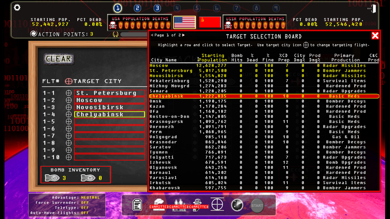 А потом они пытаются добраться до городов. Тех самых, что отмечены на карте безликими кружками. Каждый круг — миллионы голосов, запахов хлеба и пыли на подоконниках. Ты не видишь этого, движок просчитывает поражающие факторы, немедленное ослепление и долгую, мучительную работу радиации внутри тел... а еще последующий голод. Все это складывается в сухие проценты потерь.