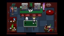 А еще здесь есть магазин, где тебе ничего не продадут — только старый демон за прилавком будет смотреть на тебя с немым укором. Встретишь гору, сложенную из пирожных и забытых обещаний. Испытаешь удачу в игровом автомате, где выигрыш пахнет предательством.