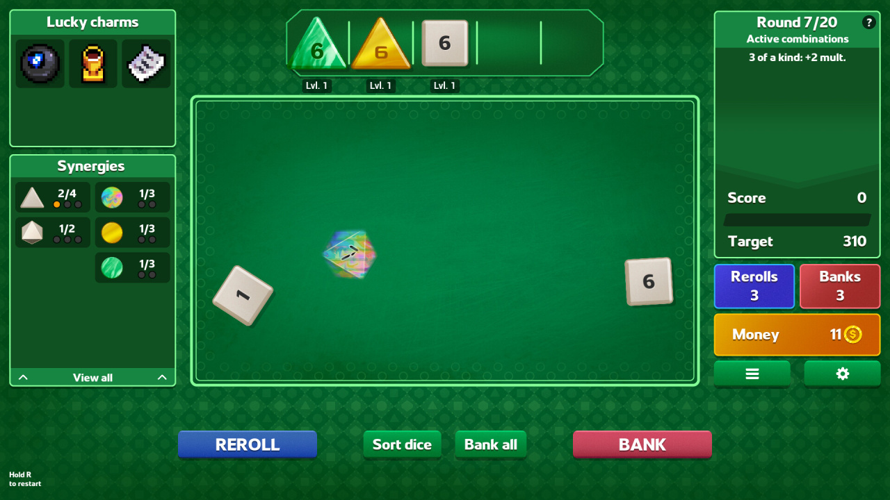 Каждый раунд — это несколько попыток поймать удачу за хвост. Ты бросаешь, и грохот костей по деревянной доске отдается гулом в висках. Часть результатов ты прижимаешь к столу, забирая себе, а остальное с тревожным скрежетом отправляешь обратно в банк. И за этот миг между бросками, за неиспользованную попытку, тебе платят. Звон монет… разве это не слаще простого везения?