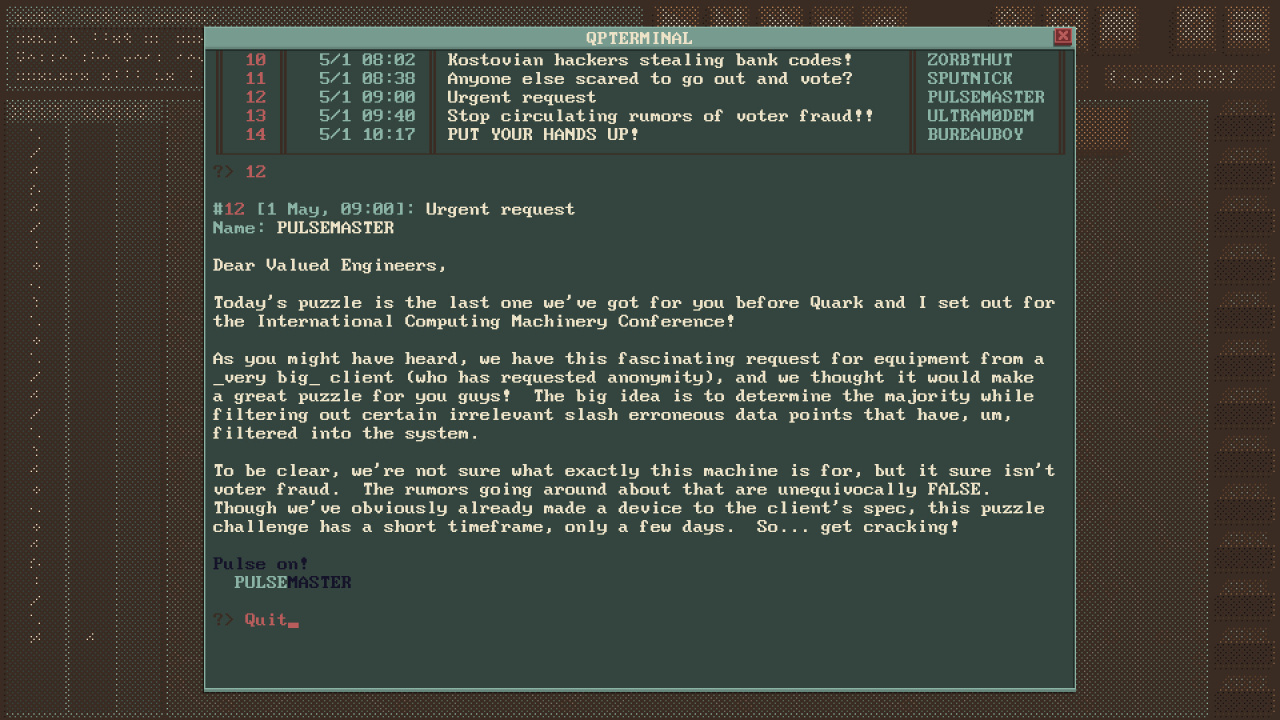 Представь себе альтернативные восьмидесятые, где холодная война оставила не шрамы на земле, а причудливые узоры в архитектуре вычислительных машин. Ты садишься за терминал, и от нагретых ламп пахнет озоном и пылью... а твой мир сужается до текстового интерфейса и логических задач.