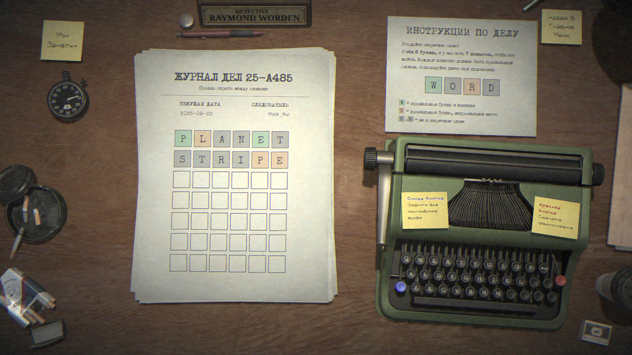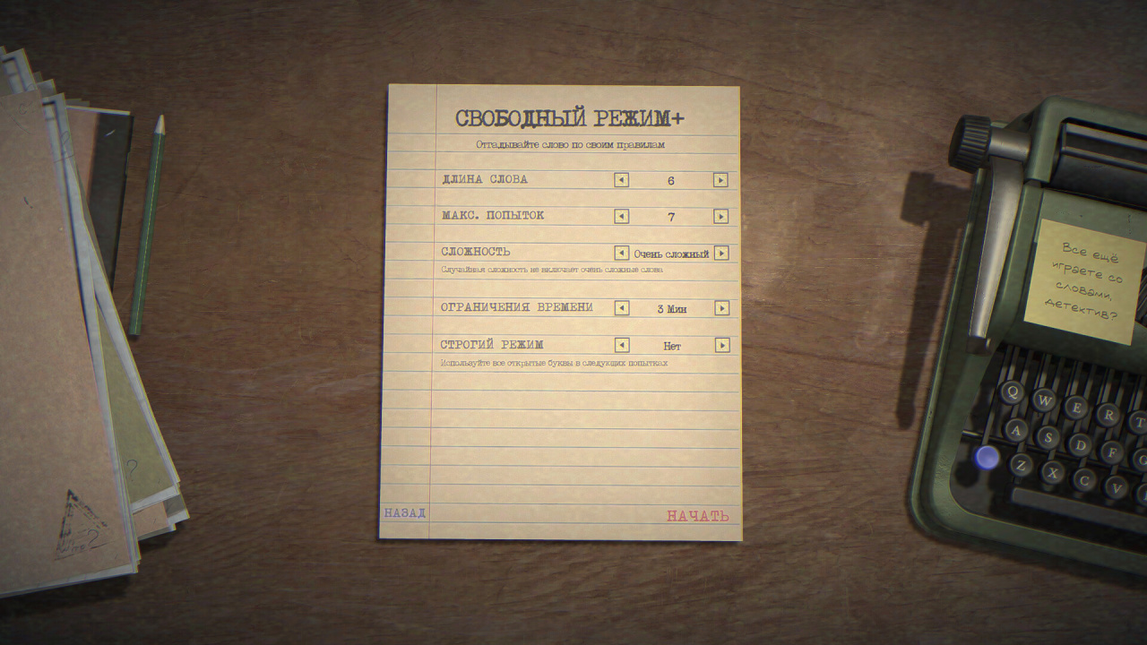 А когда основное дело будет закрыто и папка с грифом «решено» ляжет на полку… неужели ты думаешь, это конец? Город рождает новые тайны. Настрой сложность под себя, почувствуй вкус соревнования в ежедневных испытаниях или вернись к началу — но уже другим человеком, с новым взглядом на старые улики. Готов ли ты снова прикоснуться к этой машинке? Ее клавиши помнят твои предыдущие ходы.