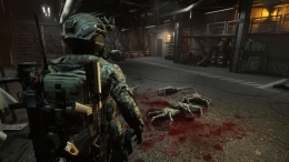 Враги здесь... не совсем враги. Это то, что осталось от персонала. Они не просто нападают — они скулят, цепляются за стены. Уворачиваешься от их корчащихся тел, а потом можешь добить. Звук ломающихся костей отдается гулом в черепной коробке.