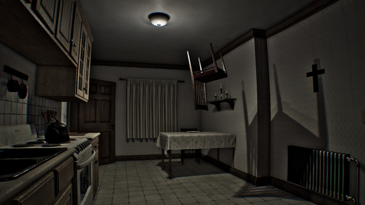 Дом обманывает тебя. Коридоры сворачиваются в кольцо, приводя обратно к той же двери с потертой краской. Дедушка молчит, уставившись в стену, а бабушка только повторяет: «Останься. Подкрепись». Они выглядят как родные... но разве у бабушки были такие плоские, нарисованные глаза?