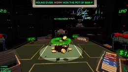 Четверо в комнате. Вид от первого лица. Кто-то нервно постукивает по столу, и этот стук смешивается с гулом генераторов где-то в глубине станции. Научная фантастика здесь оборачивается абсурдной комедией — особенно когда всё летит в тартарары из-за одной неверной ставки.