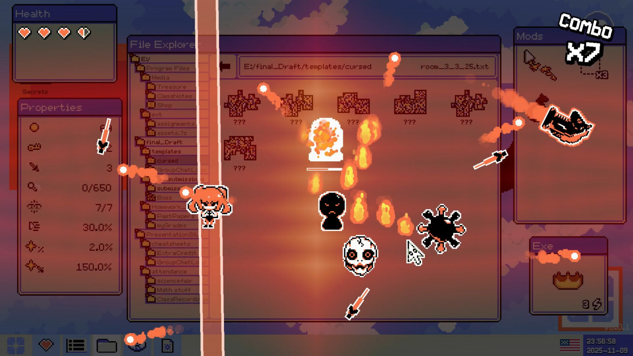 Уровни рождаются сами каждый раз, процедурная дрожь в архитектуре папок. Никогда не знаешь, что найдёшь за следующим уголком: клад из ста случайных безделушек-утилит или тихий крах, запах гари и внезапную атаку из слепой зоны.