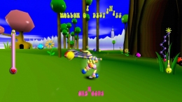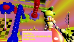 И все это видишь со спины своего персонажа — маленькая фигурка в огромном, блестящем мире. Перспектива позволяет оценить масштаб этой абсурдной архитектуры: вот башня, уходящая в пиксельное небо, вот пропасть, чье дно теряется в цветовом шуме. Удобно? Возможно. Но иногда ловишь себя на мысли — а что если он обернется? Это ведь только игра… правда?