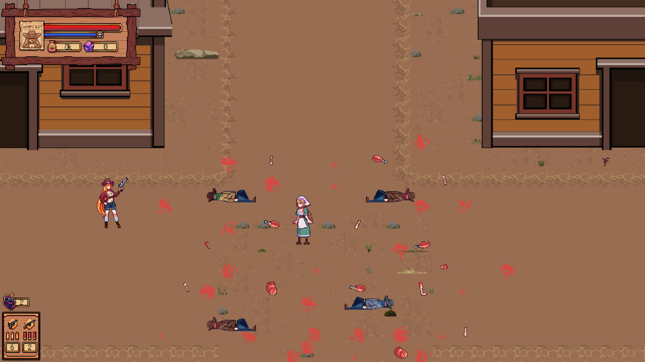Всё здесь выглядит как вырванная страница из старого комикса. Пиксели складываются в резкие тени и ядовито-яркие вспышки выстрелов. Каждая схватка — это кадр, который хочется разглядывать: вот противник замер в неестественном падении, вот гильза зависла в воздухе, будто её нарисовали поверх кадра. Особая эстетика, знаешь ли.