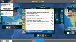 Колода случайных событий постоянно подкидывает проблемы. Один ход — финансовый крах в Азии. Другой — скандал с прослушкой. Вы никогда не знаете, что будет завтра.