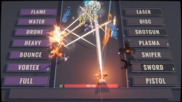 Дальше всё усложняется. Есть система Книг, которые дают случайные усиления. И есть главная фишка — стихийные реакции. Вводишь определенное слово, и твои снаряды получают свойство, например, огонь или лед. Комбинируешь слова — запускаешь мощные эффекты вроде взрыва пара. Найти все десятки комбинаций — отдельная задача.