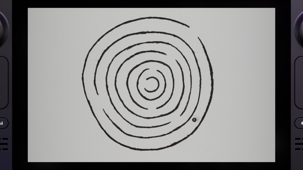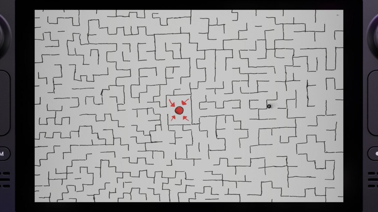 Вы управляете шаром, наклоняя саму консоль Steam Deck. Гироскоп в ваших руках — это и есть джойстик. Нужна точность и спокойствие: резкое движение, и вы летите с траектории.