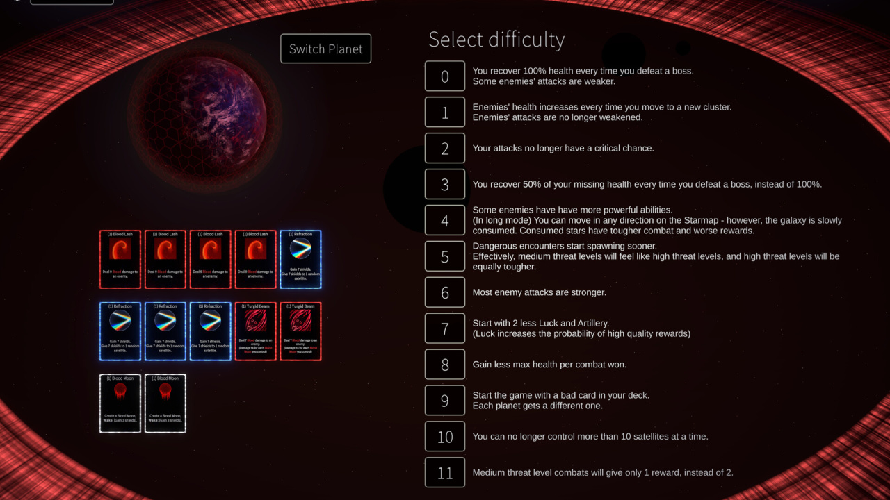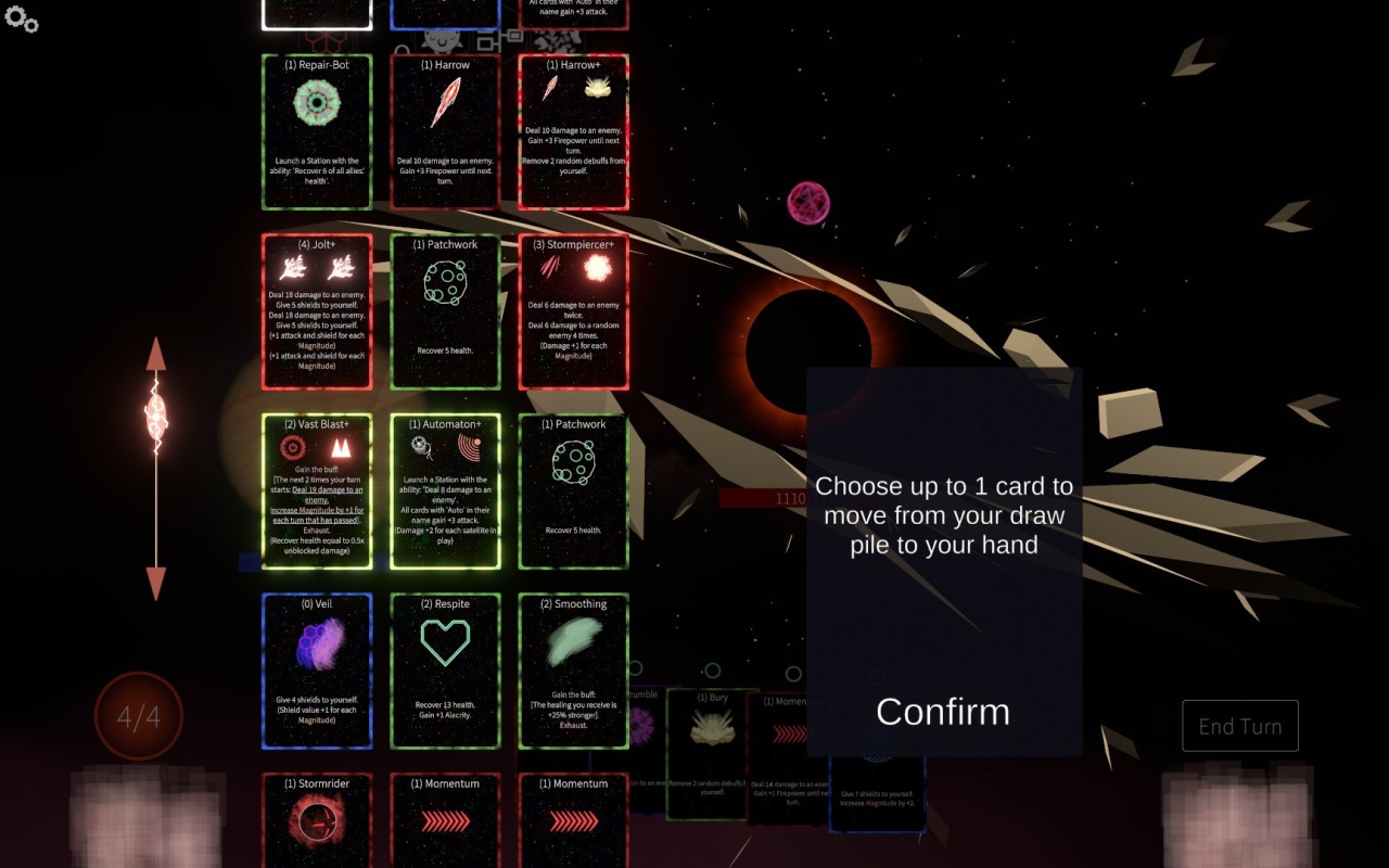 Это карточный рогалик, где твоя планета — это колода. Карты — это оружие, щиты, дроны. А противники — Явления. Огромные космические сущности, которые медленно пожирают все на пути.