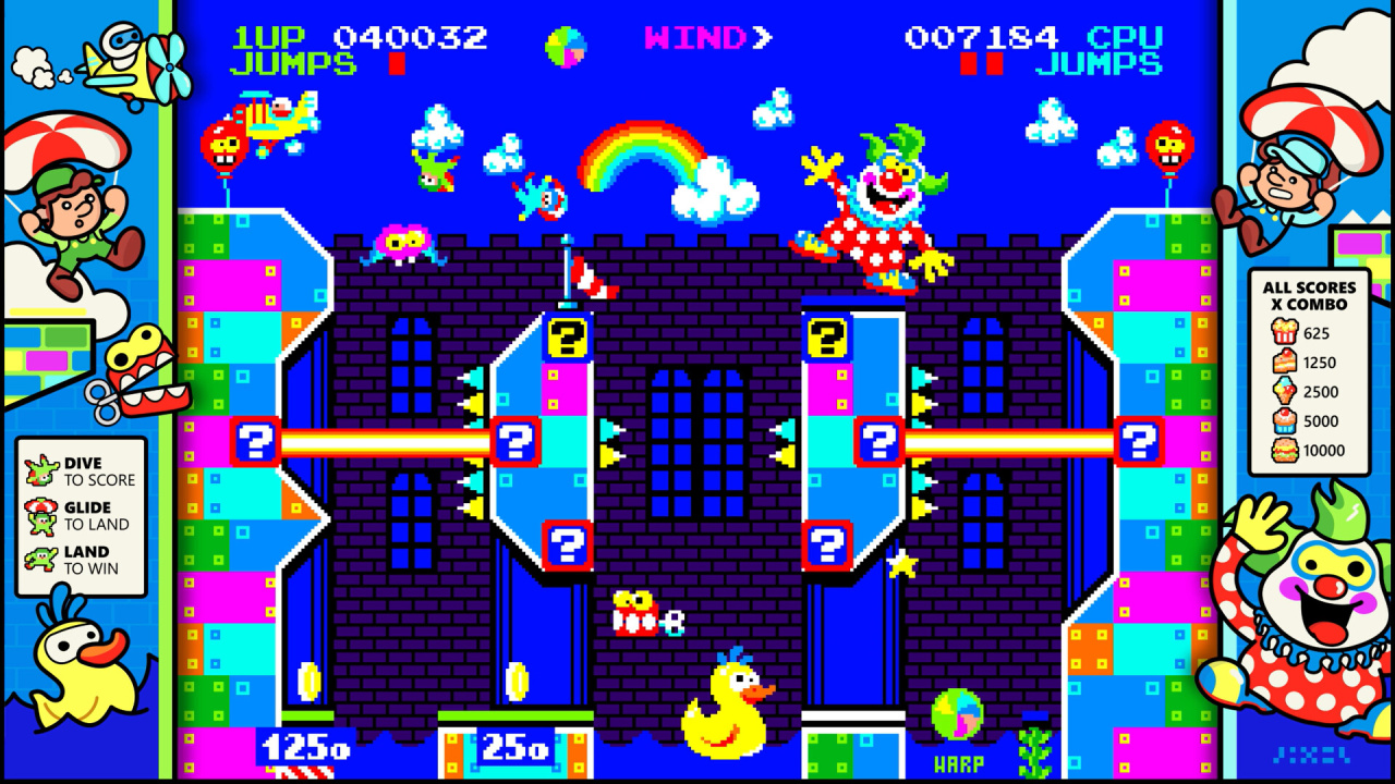 В итоге получается хаотичная и азартная дуэль. Вы считаете очки, держите в голове множитель и пытаетесь не врезаться во что-нибудь. А ваш персонаж тем временем весело отскакивает от всего подряд.