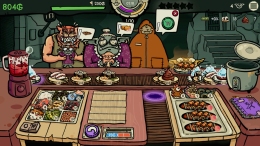 Ваше меню соответствует аудитории. Рис, рыба, гусеницы, слизни, куриные головы. Нужно быстро комбинировать ингредиенты на конвейере. Ошибешься — получишь несъедобную массу. Клиент разозлится, уйдет без оплаты. Прибыль упадет.