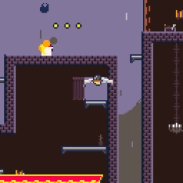 Здесь нужно хорошо двигаться. Прыжок, рывок, короткое планирование — без этого не пройти. Механика простая, но требующая точности. Сначала учишься летать между шипами, потом уже отбиваешься от демонов.