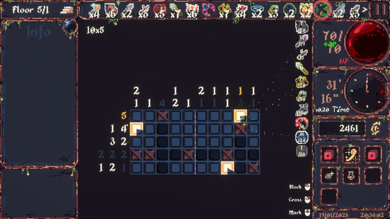 CiniCross — это спуск в подземелье, где нужно решать японские кроссворды. Но это не спокойная головоломка. Таймер здесь не останавливается. Он тикает непрерывно, от уровня к уровню.