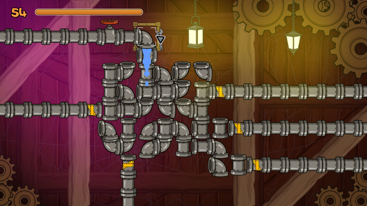 Каждый уровень — это головоломка. Нужно распутывать клубки труб, комбинировать детали и укладываться в время.