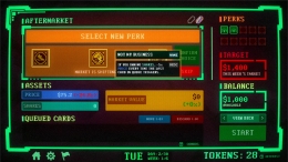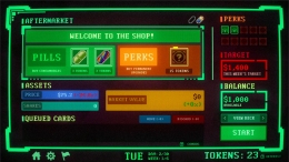 Между торговыми днями открывается «послерыночный» магазин. Там можно купить новые инструменты. Например, «Медвежий капкан», который убирает негативные карты из колоды. Или одноразовые усилители.