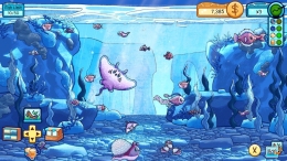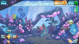 Механика проста. Вы кормите рыб, чистите стекла, следите за температурой и фильтрами. Если всё хорошо, питомцы растут. Повзрослевших можно продать, а на вырученные деньги купить новые декорации или специальные наборы с случайными обитателями.