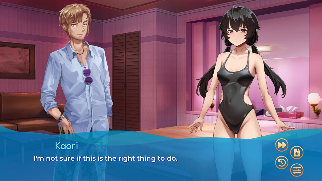 Суть в следующем: это визуальная новелла про сложный выбор, где спортивные амбиции переплетаются с личными. Без пафоса, просто страсти на фоне хлорированной воды.