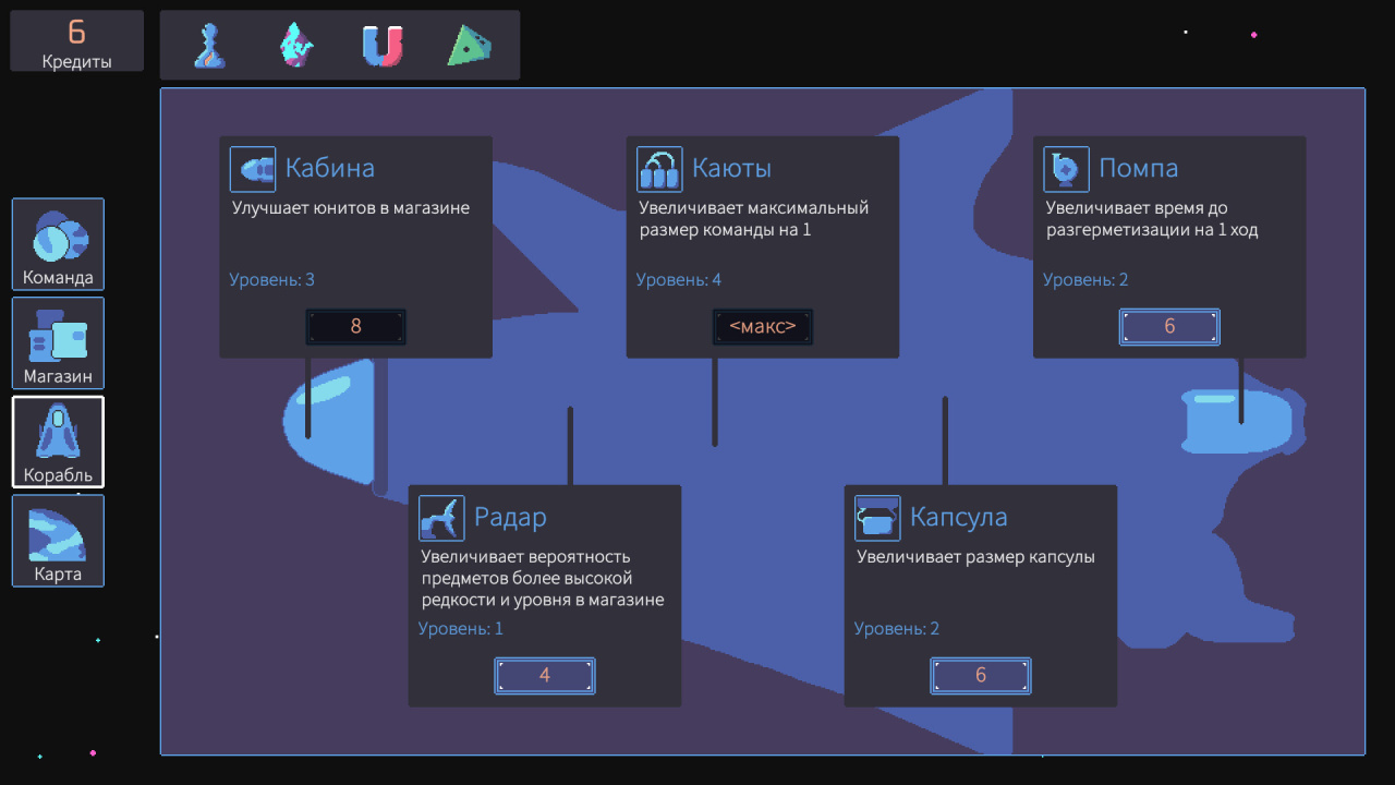Между вылазками ты развиваешь базу. Добыча идёт на улучшение корабля и расширение трюмов. Если успешно эвакуируешься — сохраняешь всё ценное. Особенно важны редкие артефакты: они дают пассивные бонусы, которые меняют подход к следующим миссиям.