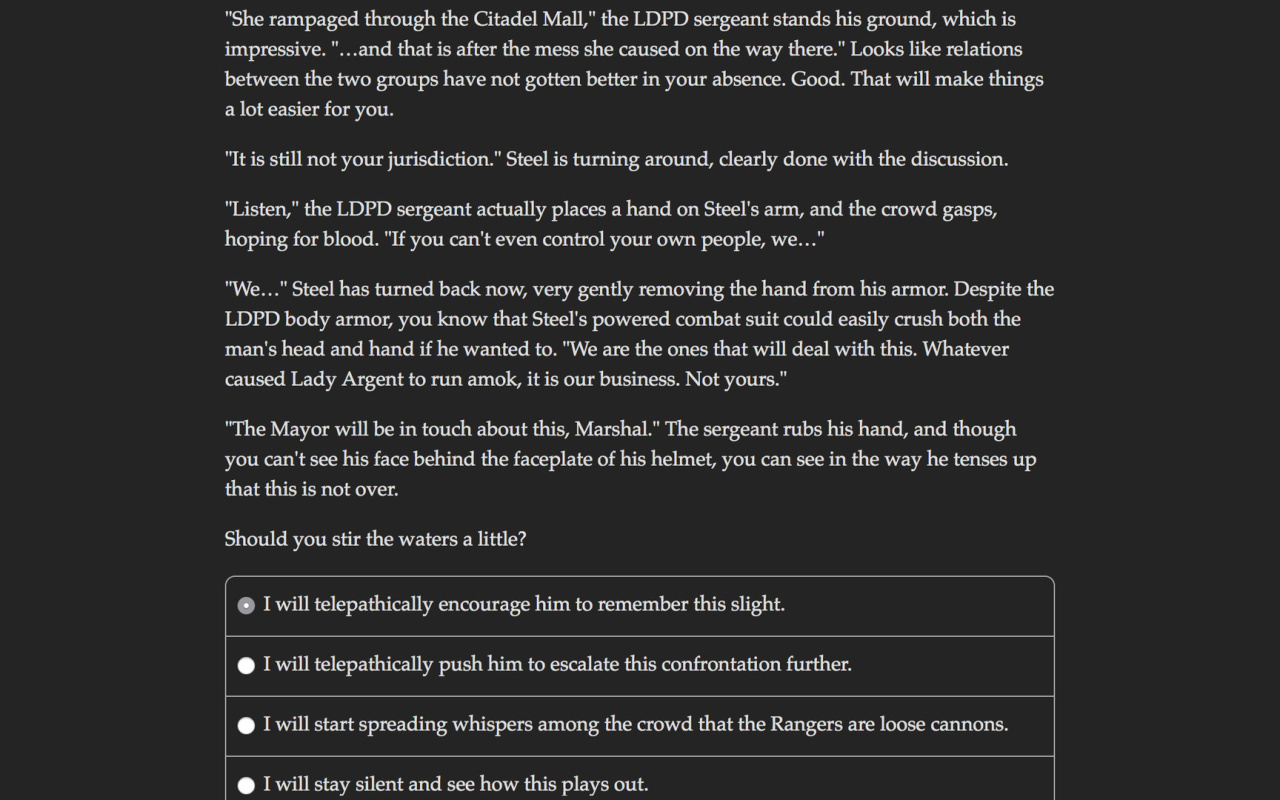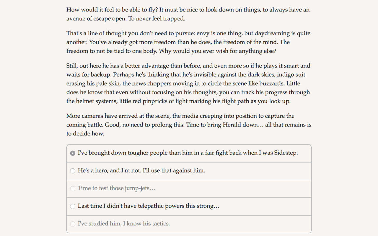 Теперь вы — телепат, который хочет сжечь этот город дотла. Ваша сила — проникать в чужие умы и брать под контроль тела. Вы можете заставить кого угодно сделать что угодно.
