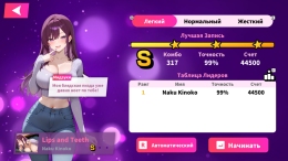 В игре три уровня сложности и десять треков. У каждой девушки своя музыкальная тема. Результаты попадают в онлайн-таблицу лидеров, так что есть ради чего тренироваться.