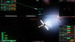 Сражения идут в полной тишине, в трехмерном пространстве. Нет привычного здоровья у кораблей. Вместо этого — куча модулей: командный пункт, двигатели, радиаторы. Попади по радиаторам — и корабль медленно сварится изнутри собственным теплом. Потеряешь командный отсек — твоя эскадра превратится в беспомощную груду металла.