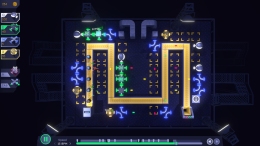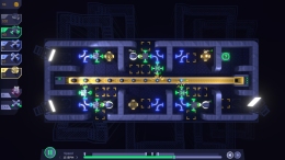 Уровни — это сложные цеха с движущимися конвейерами. Нужно так проложить маршрут луча, чтобы он попал во все батареи с минимальными потерями. Иногда приходится ломать почти всю схему и начинать заново.