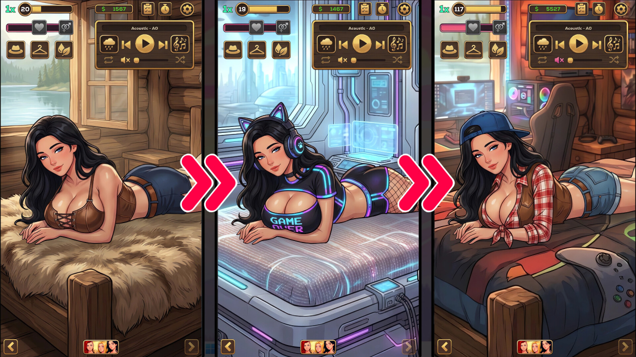 Dane Lo-Fi — это симулятор, в котором ты собираешь эротические звуковые сцены. Основа — расслабляющая музыка. Поверх неё накладываешь другие слои: дыхание, стоны, влажные звуки.