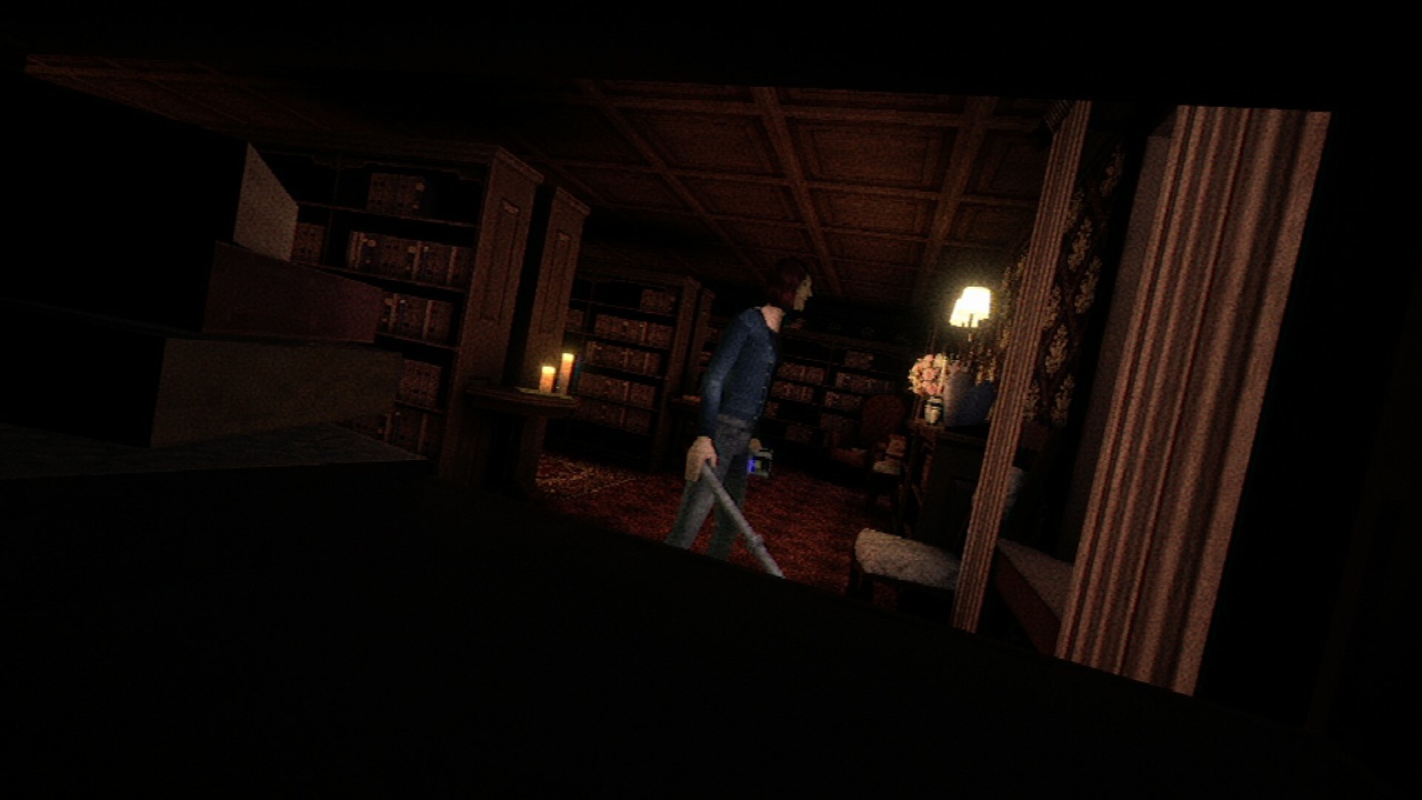 Дом — лабиринт. Всё выглядит как старая запись на плёнке: помехи, низкополигональная графика. Камера статична, управление нарочито неудобное. Вы сразу чувствуете ловушку.