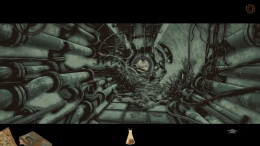 Играть нужно медленно и внимательно. Вы смотрите на мир, а курсор мыши иногда меняется, если рядом есть что-то важное. Нажимаете — и в дневнике появляется зарисовка: схема механизма, облик существа, фрагмент артефакта.