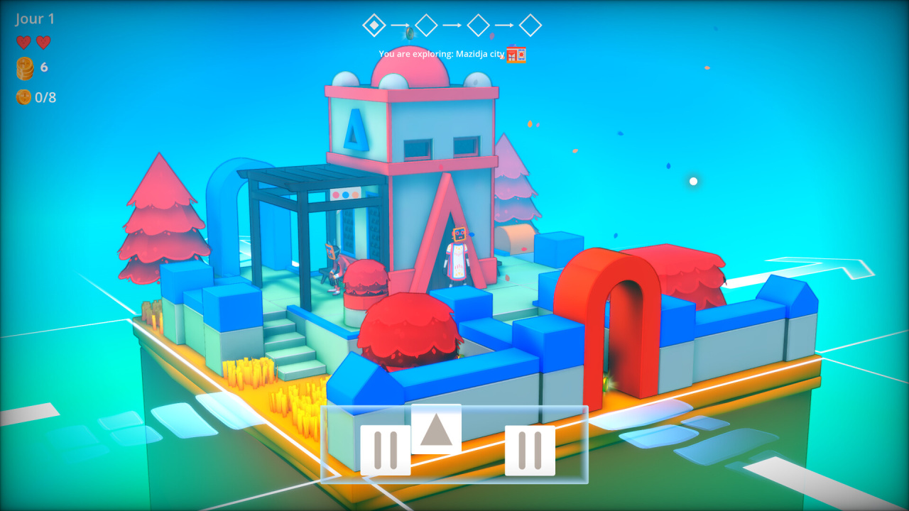 Игра происходит в спокойном, красивом мире. Вы будете бродить по живописным руинам древних цивилизаций, встречать странных существ. Но главное — постоянно объясняться карточками.