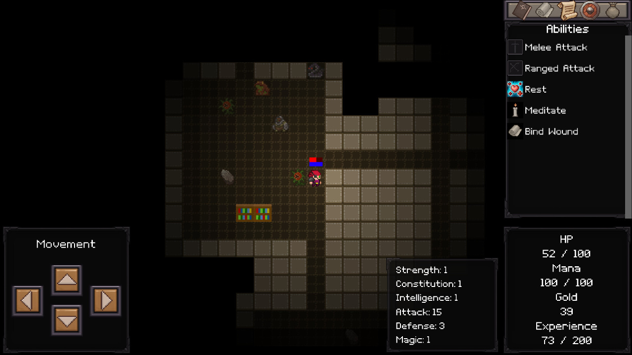 Вы спускаетесь в пиксельные катакомбы. Лабиринт каждый раз новый, запомнить не получится. Бьетесь врукопашную — просто шагаете на врага. Здоровье восстанавливается мучительно медленно.