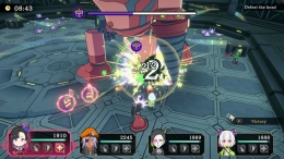 Проходить это всё можно в одиночку или в коопере на четверых. Суть в следующем: тактически мыслить, управляя позицией на бегущей ленте, и постепенно растить силу своей адской команды через конфеты и новые наймы.