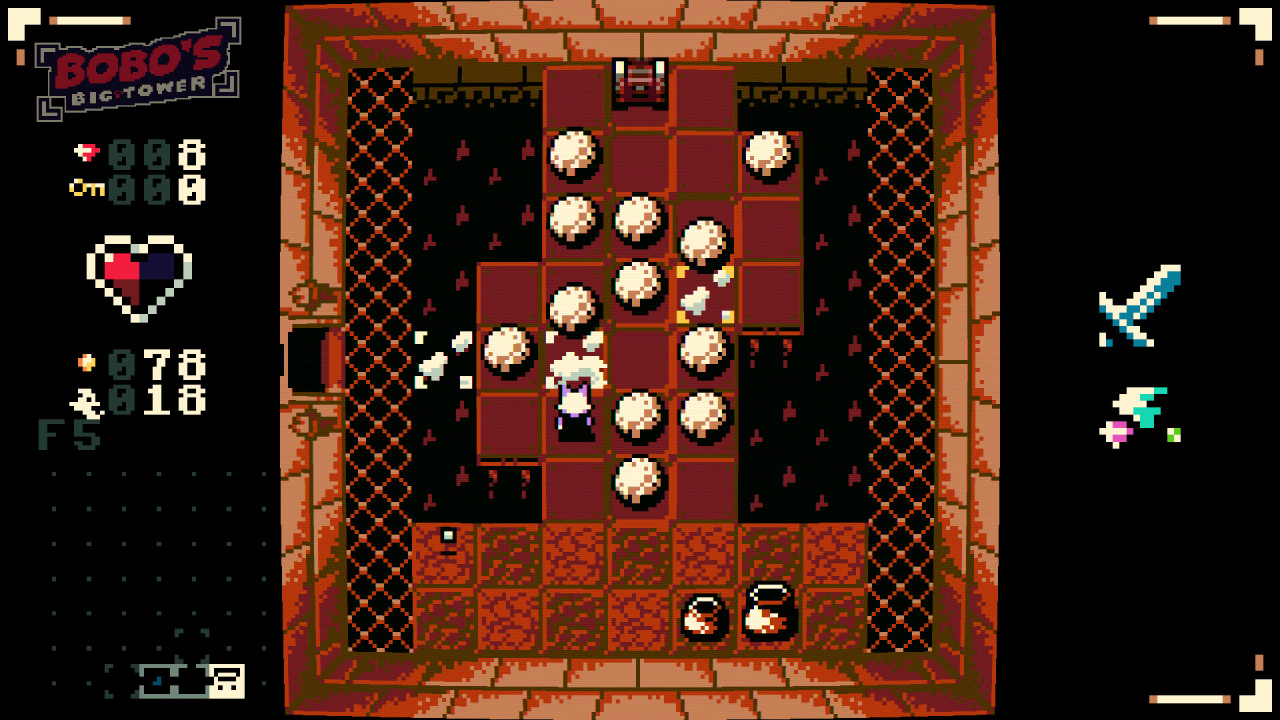 В Bobos Big Tower время идет только когда ты двигаешься. Стоишь — часы замирают. Это заставляет каждое действие обдумывать заранее.