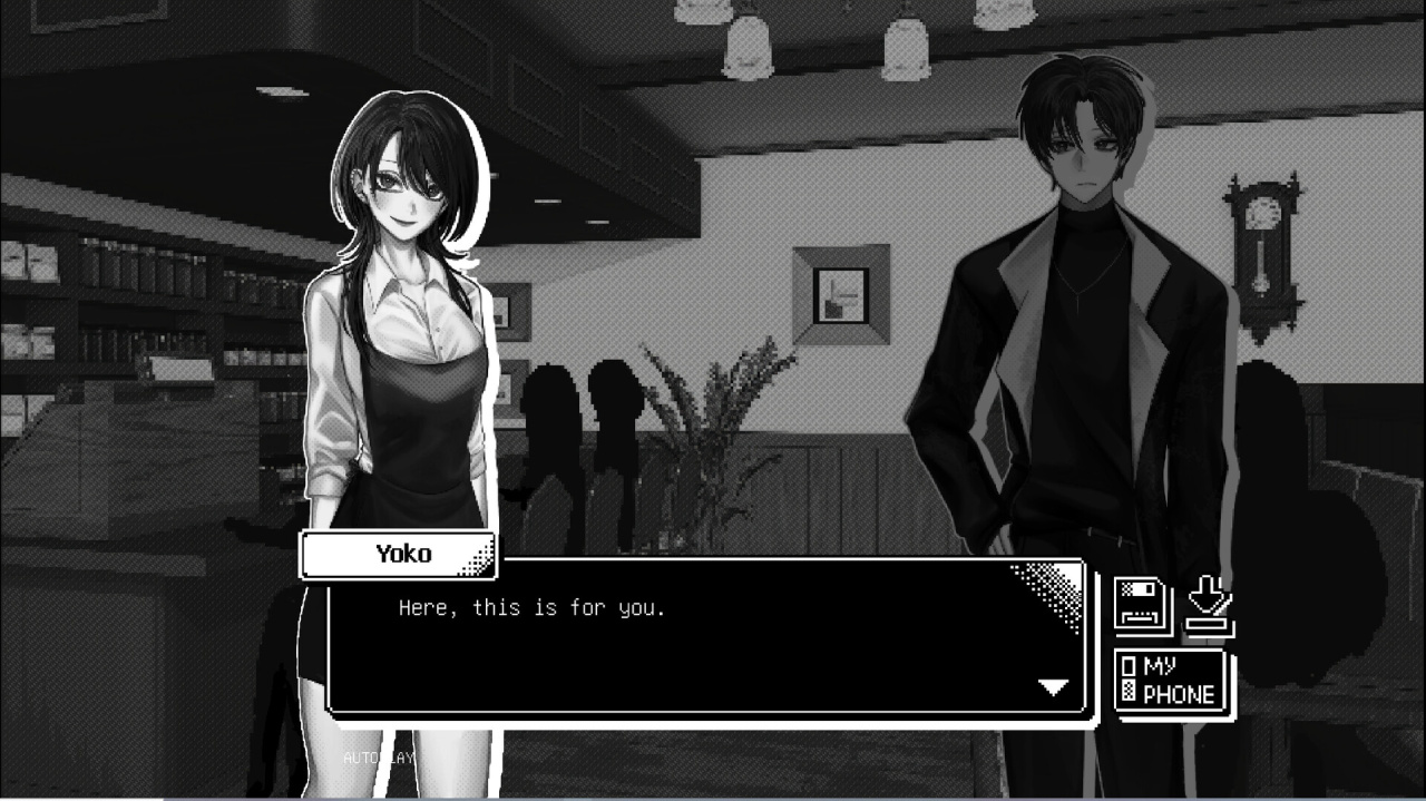 Текстовая основа огромная — больше ста тысяч слов, и сюжет нелинейный. Графика сочетает пиксельную эстетику с полуреалистичными анимированными сценами. По ходу дела открываются 14 коллекционных иллюстраций.