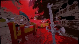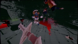 После боя на полу остаются куски тел. Вы собираете их вакуумным аппаратом и перемалываете в мясорубке. Получается кровавый фарш.