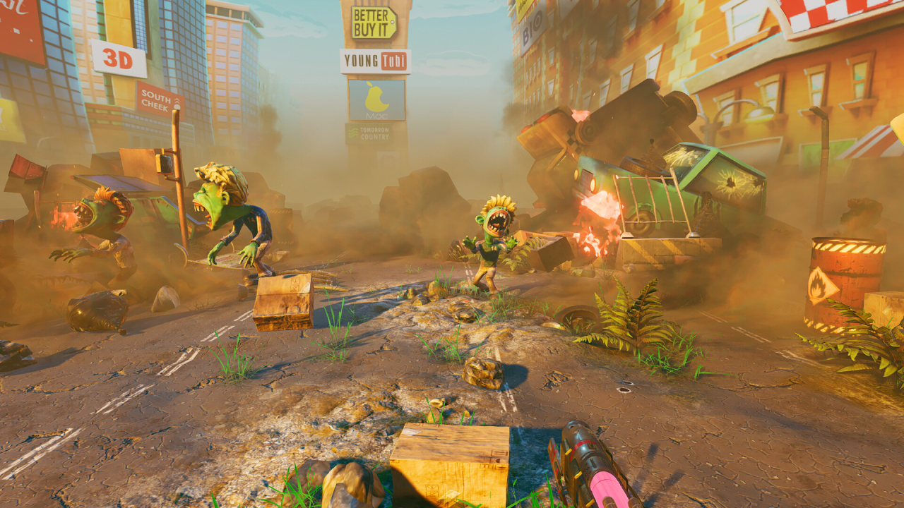 Мир игры не мрачный и не страшный. Вместо этого — яркие развалины городов и пирамиды в песках. Зомби здесь больше похожи на карикатуры, а боссы устраивают какой-то абсурдный балаган.