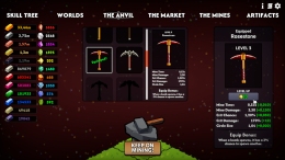 Из добытых слитков вы коваете новые кирки. Драгоценные камни вставляете в них для бонусов. Каждая часть экипировки тоже даёт свой эффект.
