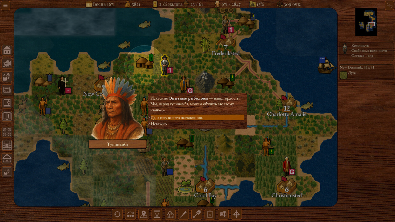 Вот что важно. Вы не просто расширяетесь. Вы готовитесь к войне за свободу. Каждое решение по управлению колонией — шаг к этому. Кого нанять: солдата или фермера? Что производить: пушку или инструменты? С кем дружить из местных племён, а с кем воевать?
