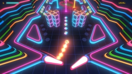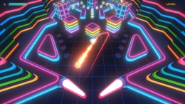 Это медитативное занятие. Вы целитесь, запускаете шар, и он отскакивает, снося ряды блоков. Каждое попадание сопровождается сочной вспышкой неонового света. Всё залито эстетикой восьмидесятых: флуоресцентные цвета, ретрофутуристические локации.
